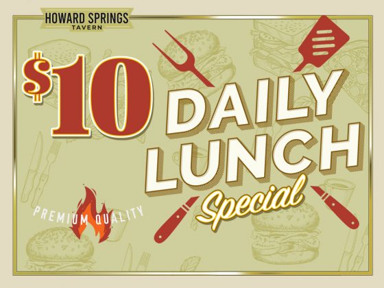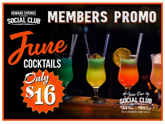 Only 23 kilometers south of Darwin and right on the doorstep of the Kakadu and Litchfield National Parks, Howard Springs Tavern is one of the region’s favourite spots. The whole family can enjoy the great atmosphere of our Bistro for lunch from 12 til’ 2, or dinner from 6 til’ 8:30. Our relaxing beer garden is also on offer so you can enjoy an ice cold drink or bar snacks outdoors. Our value-for money meals are famous in the region and there’s a playground to keep the kids happy. Our Sports bar caters for all tastes in sport, and features two extra large screens so you can see all the action. We also have full TAB facilities, plus Keno and pokies, so sports fans are well catered for.