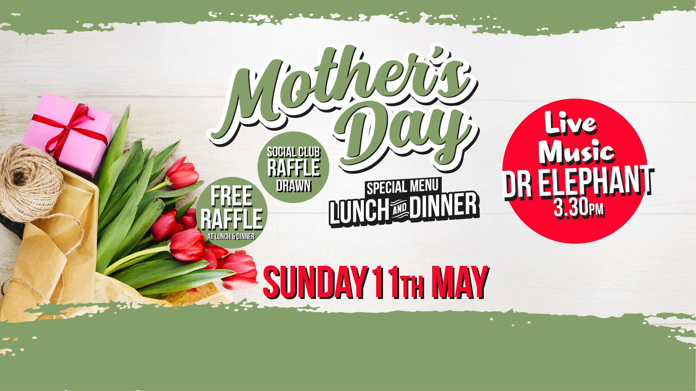 Celebrate all mum's at the Howdy this year. Social Club Raffle Drawn. Free Raffle at lunch and dinner. Live Music from Dr Elephant from 3pm All mothers receive a free glass of champagne when ordering a meal. See this years menu here.