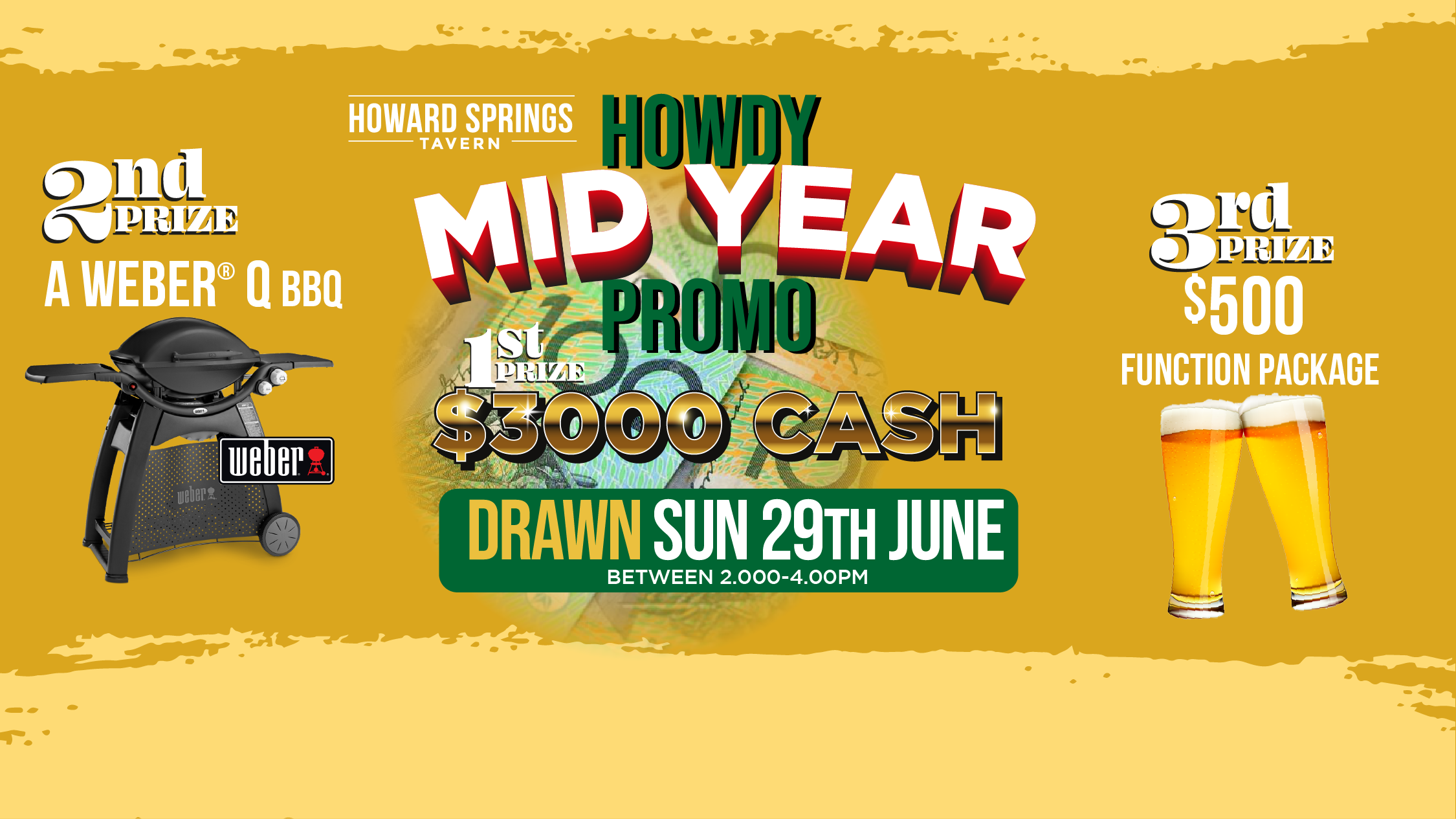 Try your luck! Every Tuesday night at Howdy Bingo night. Free Entry. Great Prizes! Weekly Jackpot Cash Draw starts at $200 increases by $25 each week. Attendance Draw every 5 weeks $200 Cash to be WON.