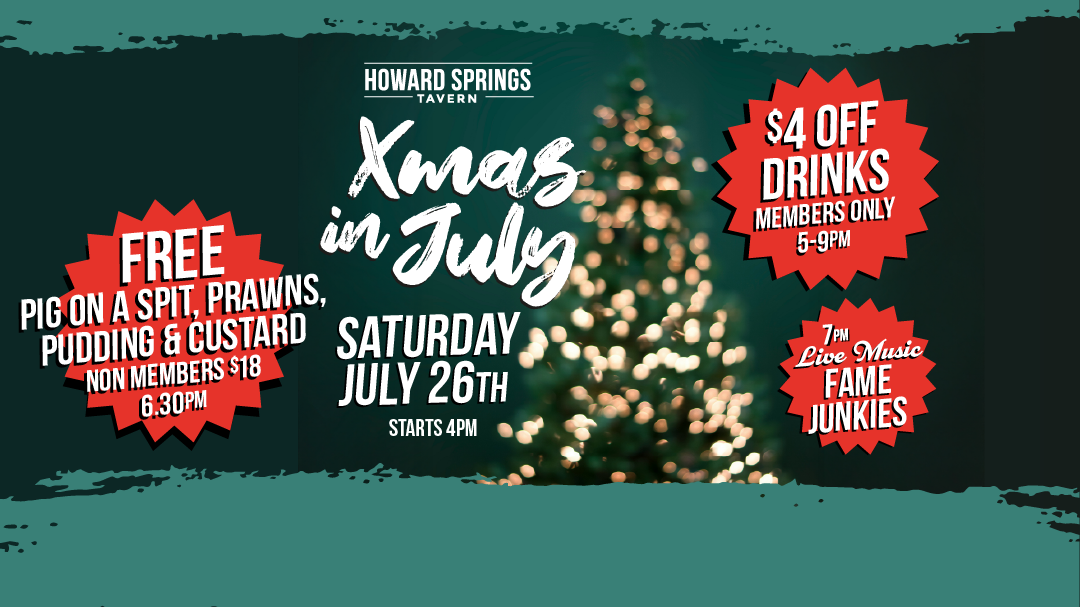Bring some Xmas cheer to winter with the Social Club Xmas in July at The Howdy. FREE Spit, Prawns, Pudding & Custard for members. ($18 for non-members) From 6.30 $4 OFF DRINKS for members between 5 and 9pm. Live music from The Fame Junkies from 7pm |